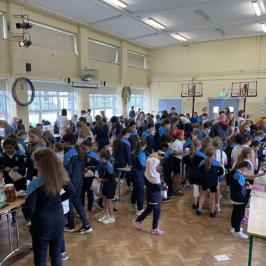 A great buzz along with some lovely aromas were wafting from the school hall recently! In preparation for their school musical, 5th and 6th classes ran their Bake Sale fundraiser on Wednesday 29th May. Along with the bake sale there was a ‘Guess How Many Jellies in the Jar’ competition and some extra special cakes to be won in the raffle. All classes took their turn to participate in this fun event. The Bake Sale was a huge success we thank you for your support. Next on the list is the school musical ‘Willy Wonka Junior’. Exciting times ahead!