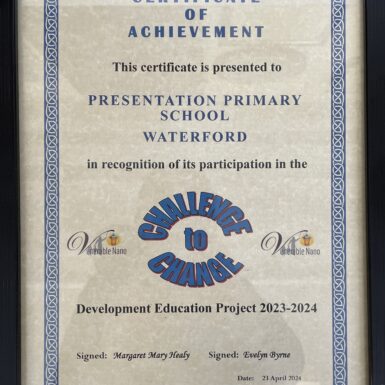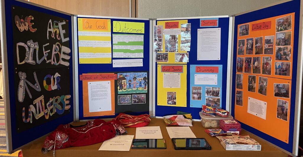 On 23rd April, 10 pupils from Mrs McAra’s Fifth Class travelled to Kilkenny to present their project ‘Celebrating Diversity’. All pupils in the class worked very hard this year researching, recording, compiling and presenting their findings on this topic. The opportunity to travel to Kilkenny and meet with pupils from other schools was wonderful. The girls presented their project with confidence and it was clear to see how proud they were of all their hard work. A huge well done to all pupils in the class and an extra well done to Mrs McAra who worked tirelessly since the beginning of project. Congratulations!