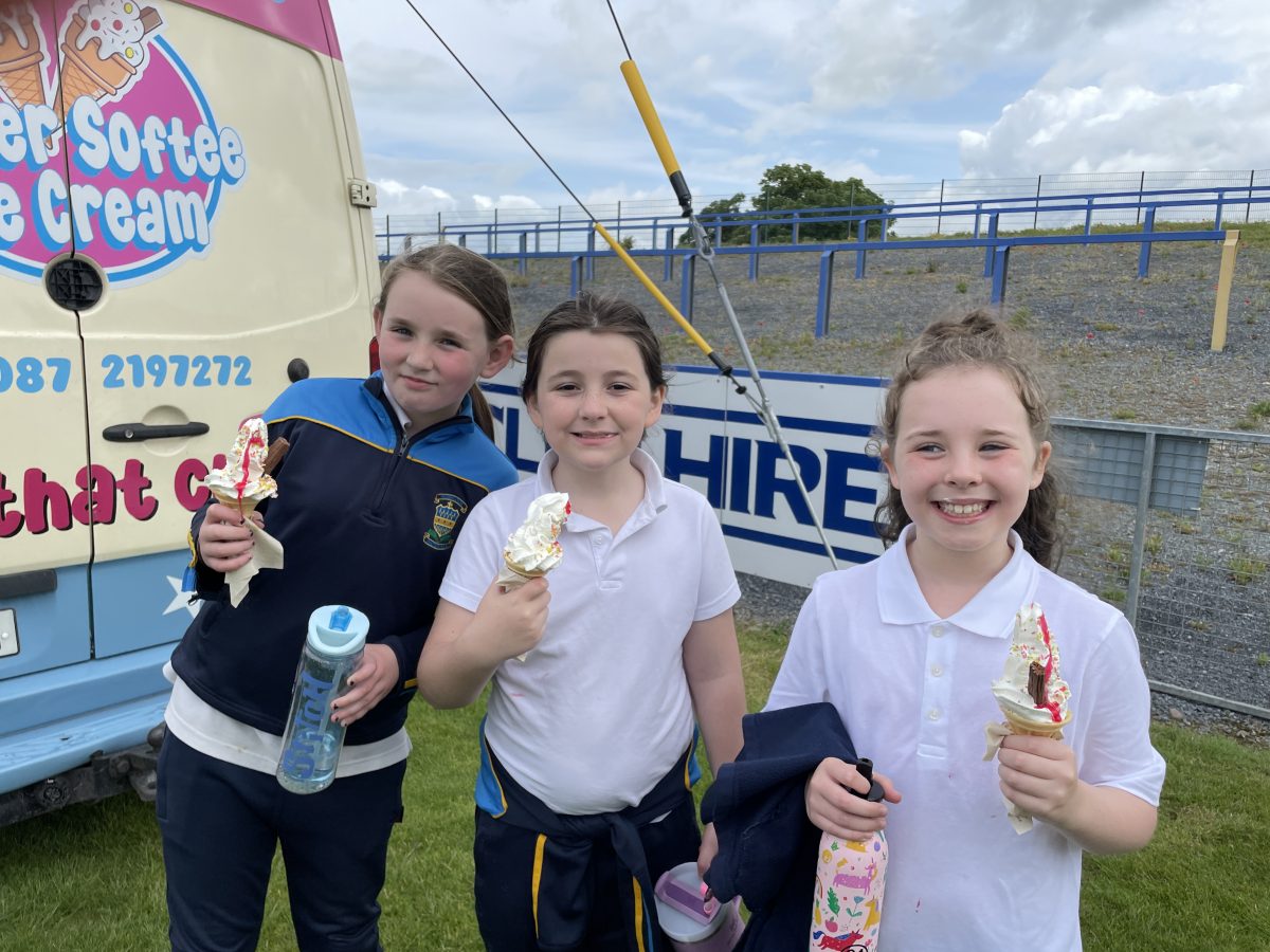 Fun Day…On 6th June pupils from First to Sixth Classes enjoyed a super fun FUN DAY. The girls and boys were busy with lots activities under the guidance of our favourite hurlers. The day ended with a tasty ice cream which was very welcome at the end of a brilliant day.
