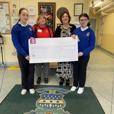 Viktoria will be heading off to Lourdes this Easter with The Irish Pilgrimage Trust. A fund raising ‘Odd Sock Day’ and coffee morning were organised for this trip. A cheque for €475 was presented to Nicola from The Irish Pilgrimage Trust on 21st March. We wish Viktoria the best of luck and look forward to hearing all about her trip after the holidays.